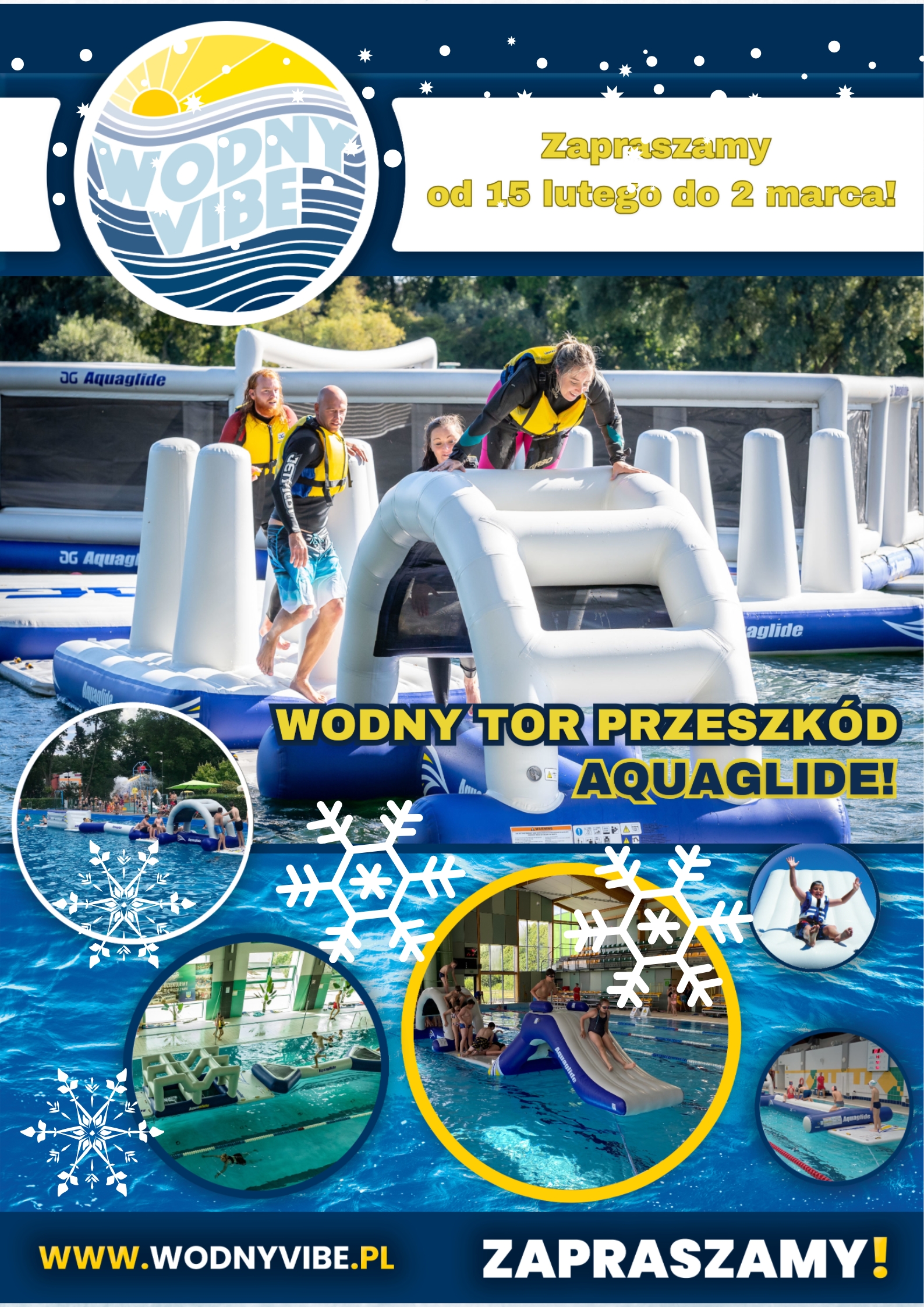 Co raz bliżej Ferie Zimowe 2025, a my mamy dla Was ponownie wodną atrakcję na naszej pływalni. Już od soboty 15 lutego do niedzieli 2 marca będzie można skorzystać z zabawy na Wodnym Torze Przeszkód AquaGlide . Wejście na tor wliczone jest w cenę biletu wstępu na obiekt. Tor dostępny dla dzieci od ukończonego 6 roku życia. Dzieci do 10 roku życia mogą korzystać z toru wyłącznie pod opieką osoby pełnoletniej. Zapewniamy kamizelki asekuracyjne, tor posiada specjalne siatki bezpieczeństwa. Istnieje możliwość rezerwacji dla grup szkolnych/grup zorganizowanych – szczegóły pod numerem telefonu 34 311 39 30. Prosimy o zapoznanie się z Regulaminem toru. Spędźcie ferie razem z nami!